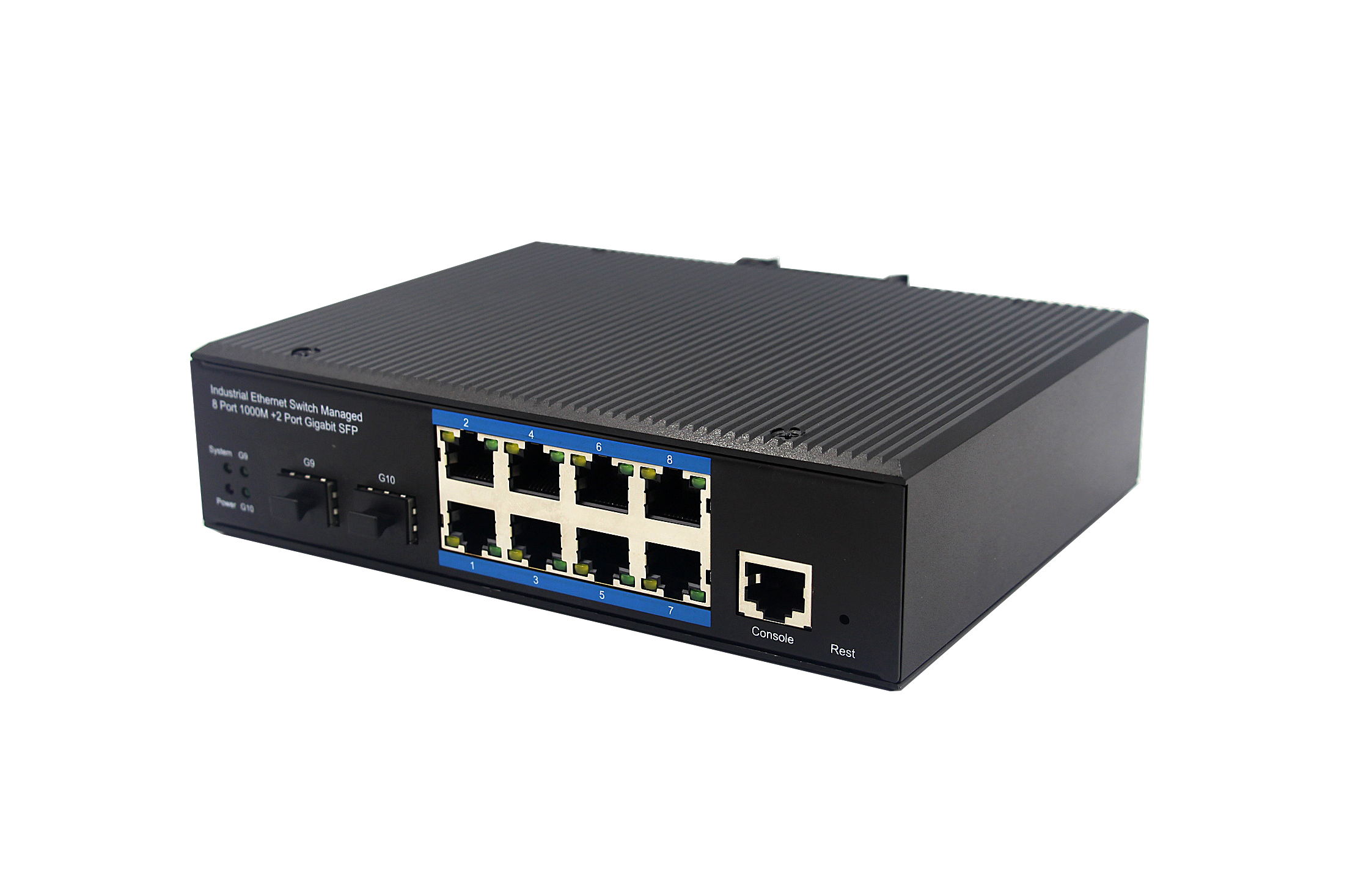 網管型千兆2光8電工業以太網交換機,產品符合FCC、CE、ROHS標準。支持2個千兆光口和8個千兆電口,支持一路console口;支持工業現場所需的以太網二層協議,保證通信網絡的穩定性;該系列交換機采用低功耗、無風扇設計,確保無噪聲干擾,同時支持-40~85℃工作溫度和良好的EMC電磁兼容性能,保證在惡劣的工業環境中保持穩定的工作,為工廠自動化,智能交通,視頻監控等工業應用領域組建快速穩定的網絡終端接入網絡提供安全可靠的解決方案。護等級的外殼及 LED 指示燈,使之成為一個即插即用的工業級設備,為用戶的以太網設備聯網提供可靠、便捷的解決方案。