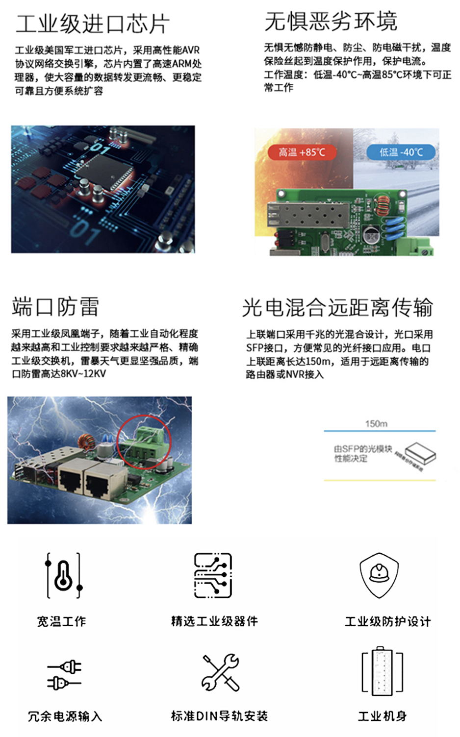 工業(yè)級(NT品牌)非網(wǎng)管1千光1千電,SFP接口,導(dǎo)軌式-DC12~52V供電-寬溫(-40℃-85℃)。默認(rèn)不含AC電源適配器。 |