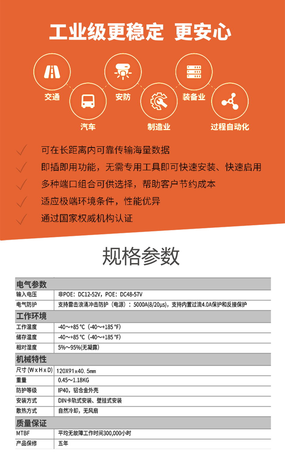 工業級POE(NT品牌)非網管1千光4千電(4POE),SFP接口,導軌式-DC48~57V供電-寬溫(-40℃-85℃)-。默認不含AC電源適配器和不含光模塊。 |