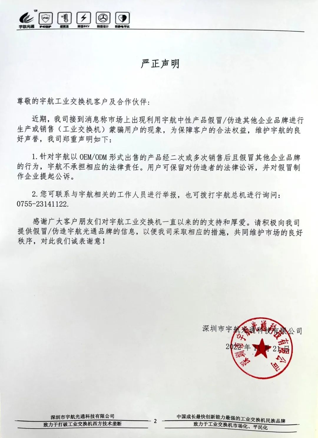 上一篇:宇航工業交換機發布關于宇航光通品牌公告!