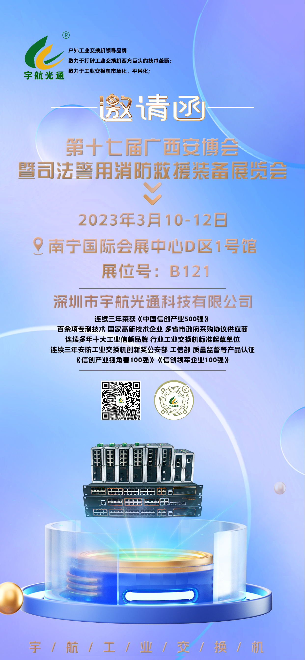 不負韶華,砥礪前行 | 宇航工業交換機再次榮獲中國安防兩大獎項,2023宇航再出發,3月展會預告精彩來襲!