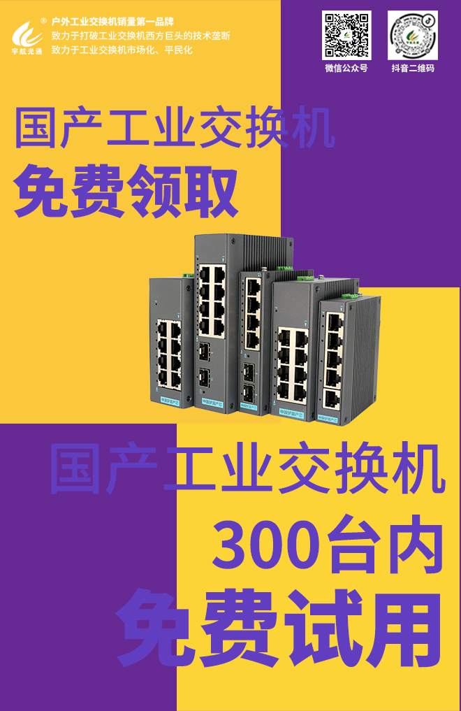 無論您是新客戶還是老客戶,只要資料齊全且征信良好,即可在宇航免費領取一臺全國產工業交換機!不限型號,只限全國產工業交換機,真正實現零成本試用。