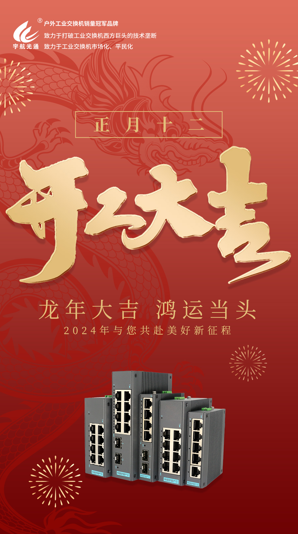 春風送暖,萬象更新,宇航工業交換機迎來了2024年的嶄新篇章。在此,宇航衷心感謝所有關心和支持宇航工業交換機的朋友們,你們的信任與陪伴是我們前行的最大動力!