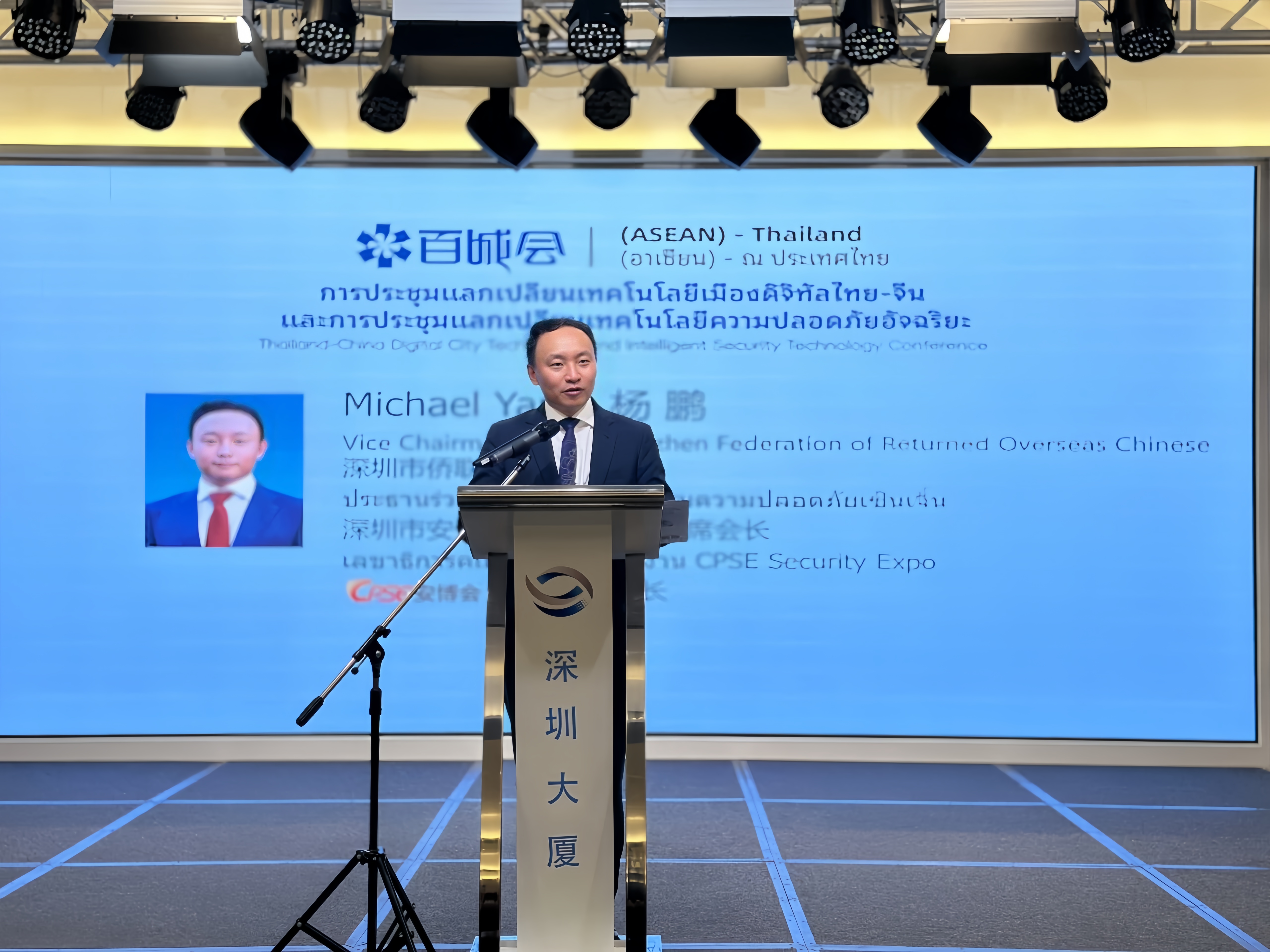 泰國深圳總商會(huì)會(huì)長、泰國智慧安防協(xié)會(huì)會(huì)長、泰國身份與生物識(shí)別協(xié)會(huì)執(zhí)行會(huì)長謝崇通和深圳市僑聯(lián)副主席、深圳市安全防范行業(yè)協(xié)會(huì)聯(lián)席會(huì)長、CPSE安博會(huì)組委會(huì)秘書長楊鵬博士分別為會(huì)議致辭。