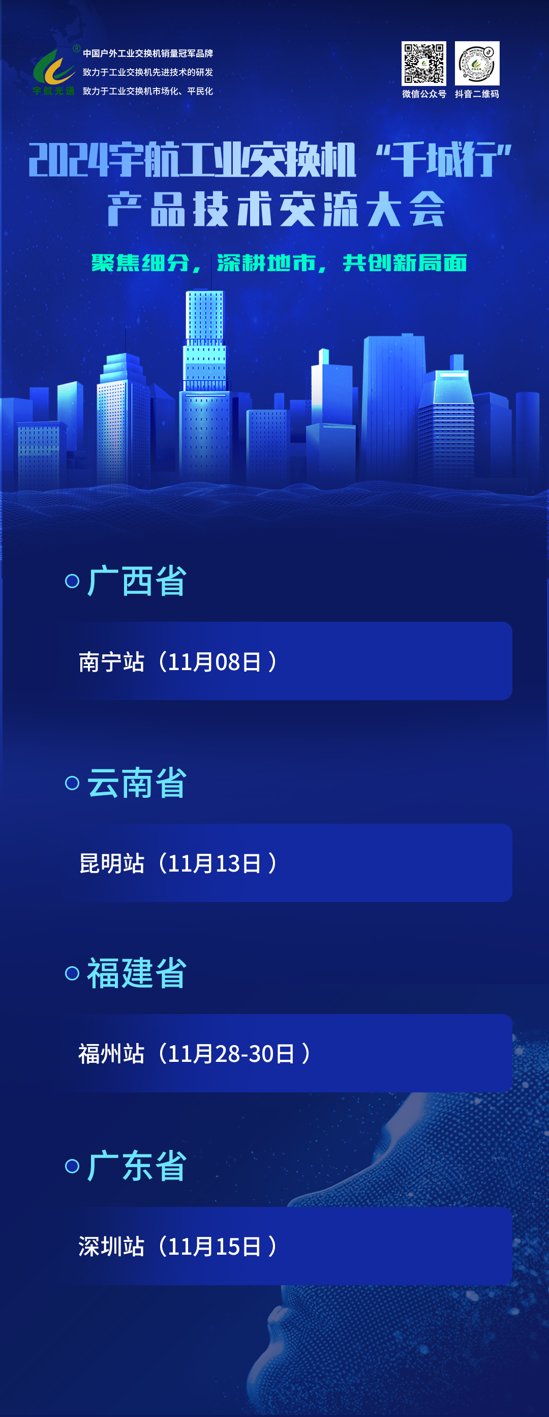 露花啼晚菊,風葉舞高梧,11月,宇航工業交換機繼續前行,將分別亮相2024年ISAF馬來西亞安防展、第二十六屆中國國際高新技術成果交易會,還將會在南寧、昆明、福州、深圳等地舉辦2024宇航工業交換機千城行產品技術交流大會等一系列精彩的活動,誠邀您一同參與!