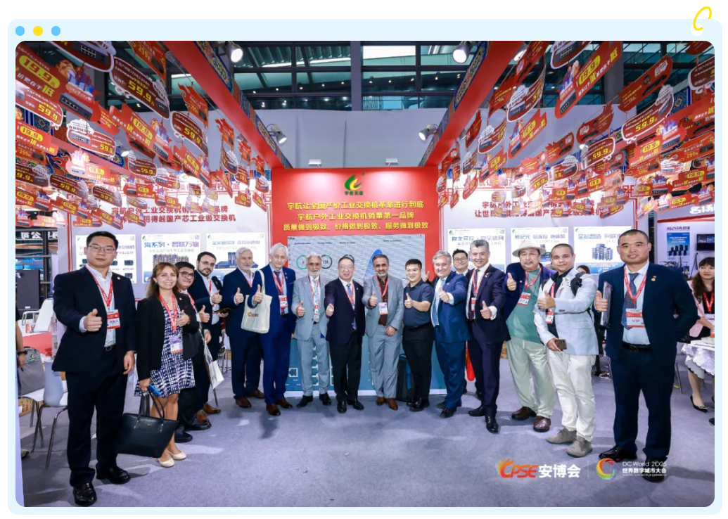 展會期間,我們很榮幸地迎來了中國國際社會公共安全博覽會組委會主席、世界數字城市大會主席、歐洲科學院院士、深安協&深交協創會會長楊金才等全國多地行業協會與機構的領導和專家蒞臨交流。嘉賓們對宇航全系列全國產工業交換機的技術突破與規?;瘧贸晒o予了高度認可,并充分肯定了我們在推動工業網絡自主可控、守護關鍵基礎設施網絡安全方面所做出的努力。這份認可與鼓勵,是我們前行路上最寶貴的動力。在此,向所有關心和支持宇航工業交換機的朋友們致以最誠摯的感謝!