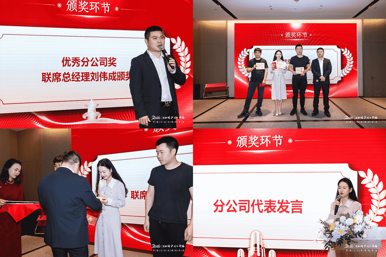 單絲不成線,獨木不成林。2025年,宇航工業交換機各分公司扎根區域市場,以實干扛起戰略落地重任。榮獲2025年度優秀分公司獎的是:外貿分公司、重慶分公司、安徽分公司!三家分公司代表依次登場,現場掌聲雷動。隨后,聯席總經理劉偉成先生上臺,為獲獎分公司鄭重頒獎。這份榮譽,是對他們深耕市場、開拓進取的最好肯定。