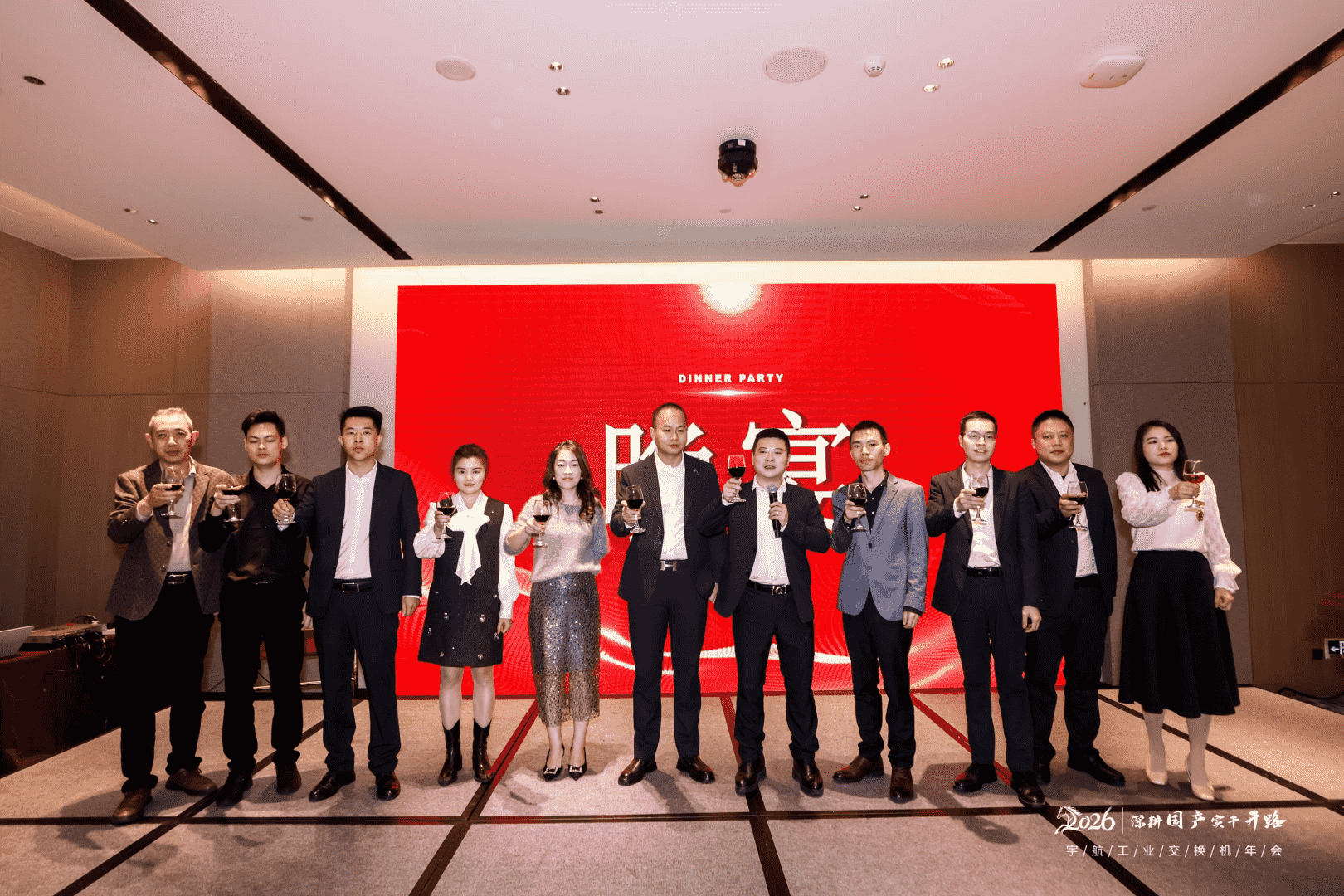 隨著年會的各項環節圓滿結束,現場的氣氛愈發輕松熱烈。大家舉起酒杯,在歡聲笑語中盡情享受著這難得的相聚時光。餐桌上,美味佳肴香氣四溢,同事們一邊品嘗著美食,一邊聊著這一年的酸甜苦辣,也暢想著新一年的目標與期待。有人在分享工作中的小確幸,有人在回憶團隊并肩作戰的時刻,笑聲此起彼伏,溫暖了整個會場。領導們也來到大家身邊,和每一桌的家人們碰杯聊天,感謝大家這一年的辛苦付出。沒有客套的寒暄,只有真誠的感謝和對未來的共同期待。夜色漸深,但宇航人的熱情不減。2026年,讓我們繼續攜手前行,用實干擦亮宇航品牌,書寫更加輝煌的篇章!