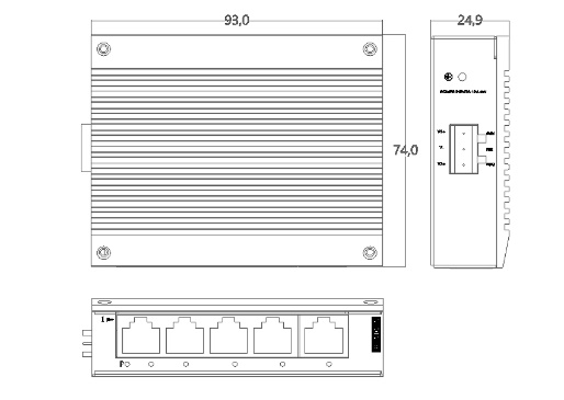 外殼:金屬材質 安裝:DIN 卡軌式,壁掛式安裝(可選) 重量:0.2Kg 尺寸 :93 x 74 x 24.9mm(寬 x 深 x 高) |