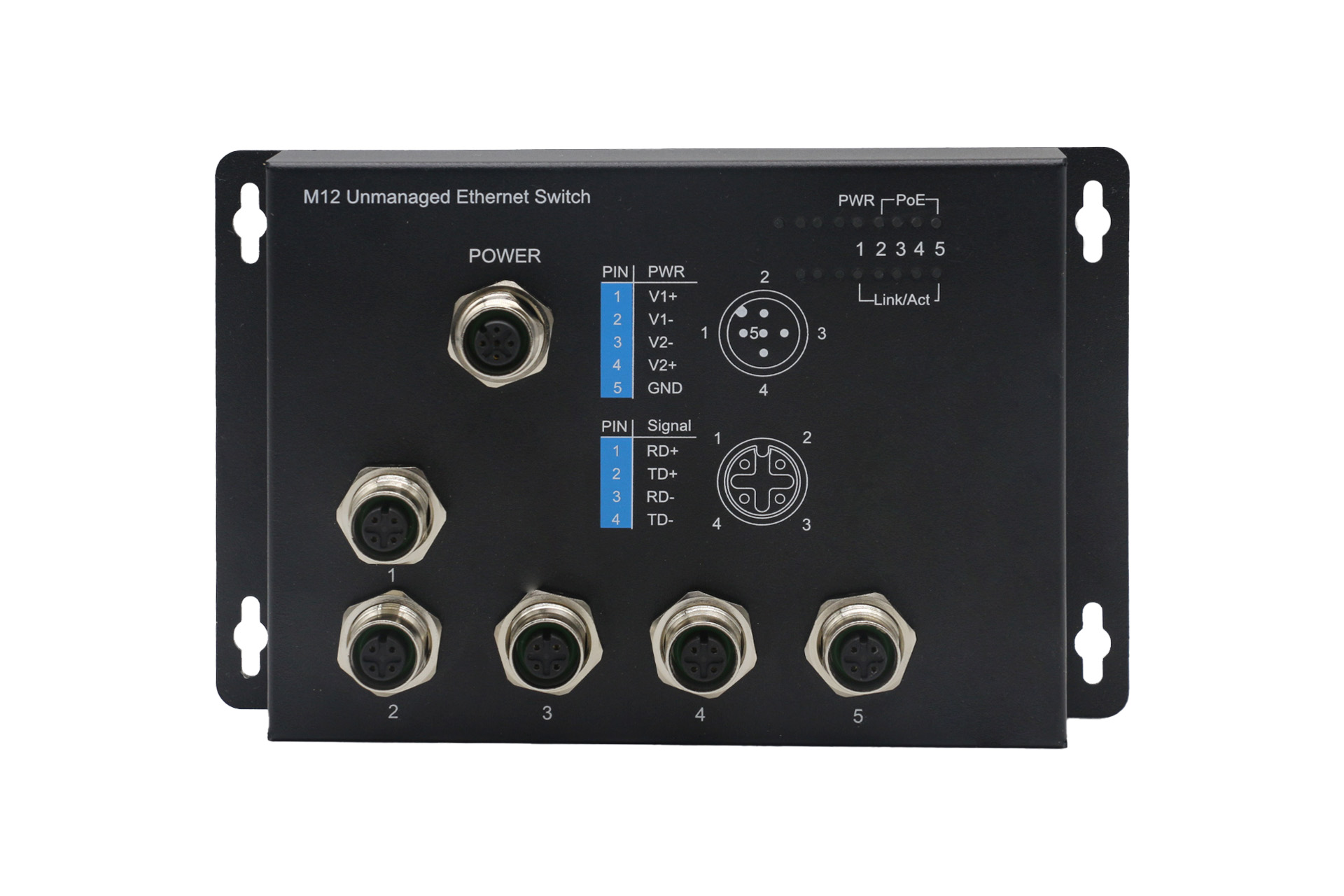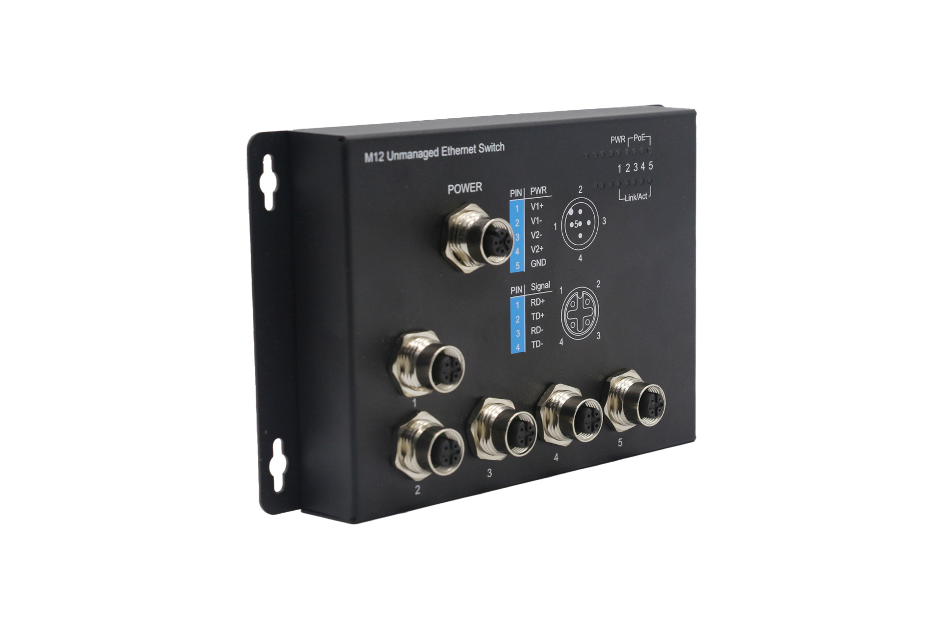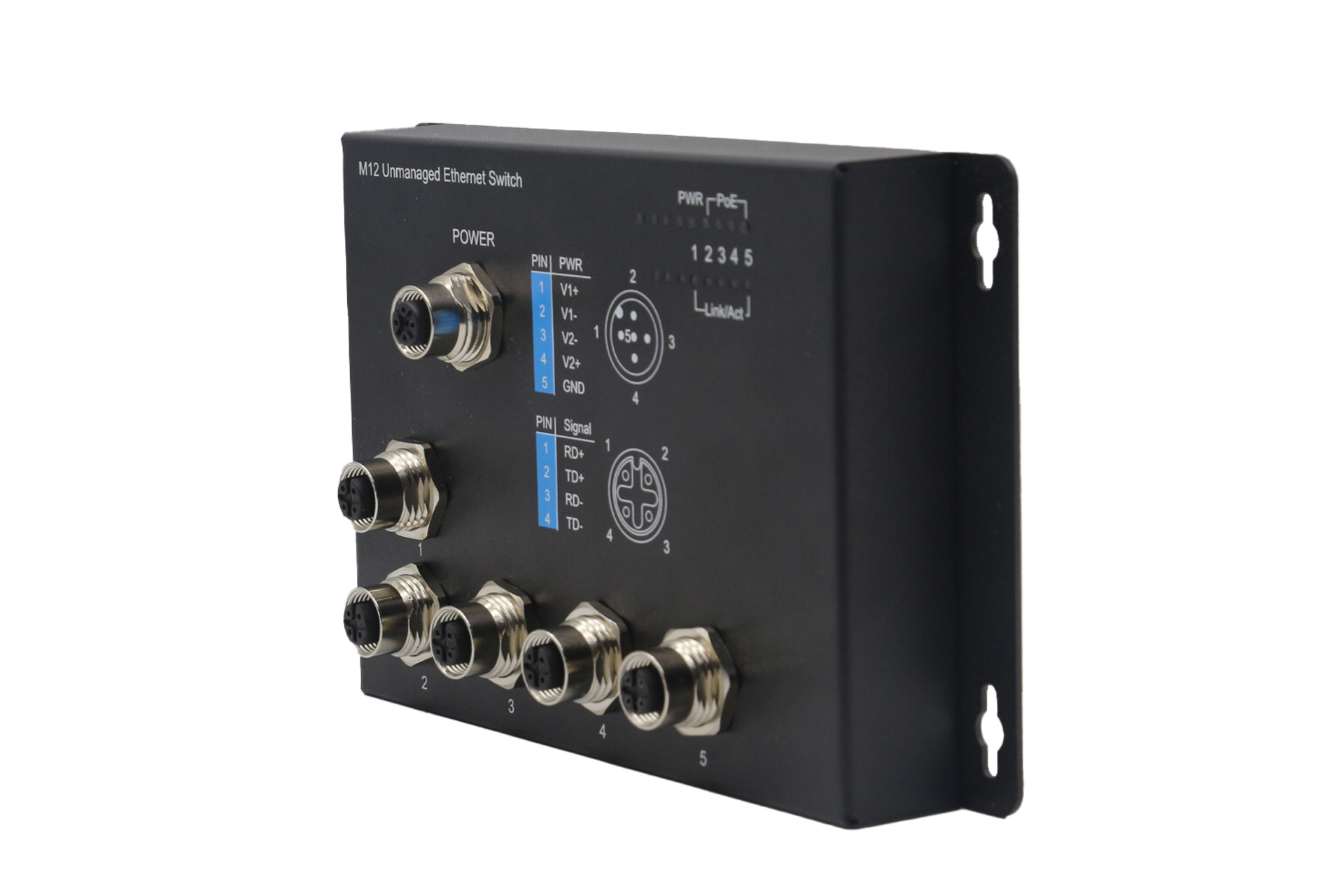 首頁產品系列渠道&寬溫鐵殼產品線M12非網管工業級交換機壁掛式5口百兆M12直插加固交換機