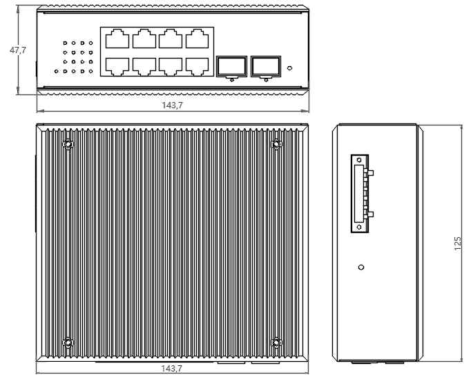 RJ45端口:10/100/1000BaseT(X)自動偵測,全/半雙工MDI/MDI-X自適應(yīng)