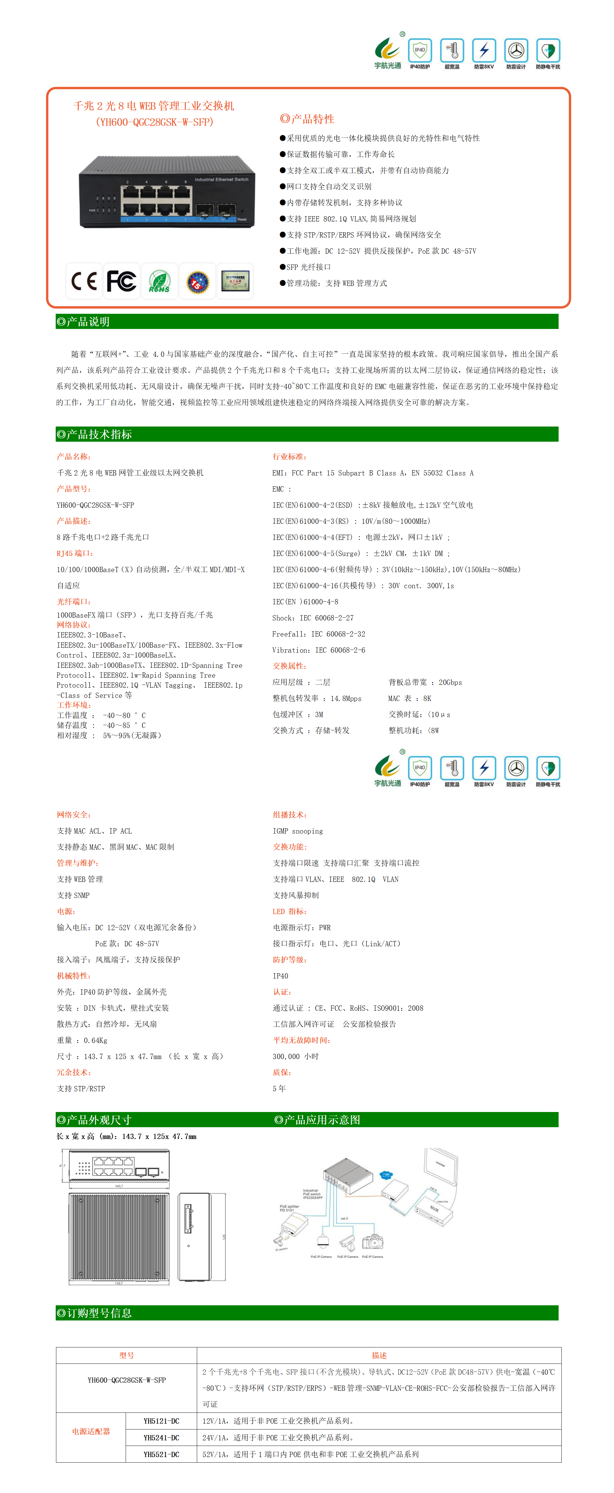隨著“互聯網+”、工業 4.0與國家基礎產業的深度融合,“國產化、自主可控”一直是國家堅持的根本政策。我司響應國家倡導,推出全國產系列產品,該系列產品符合工業設計要求。產品提供2個千兆光口和8個千兆電口;支持工業現場所需的以太網二層協議,保證通信網絡的穩定性;該系列交換機采用低功耗、無風扇設計,確保無噪聲干擾,同時支持-40~80℃工作溫度和良好的EMC電磁兼容性能,保證在惡劣的工業環境中保持穩定的工作,為工廠自動化,智能交通,視頻監控等工業應用領域組建快速穩定的網絡終端接入網絡提供安全可靠的解決方案。