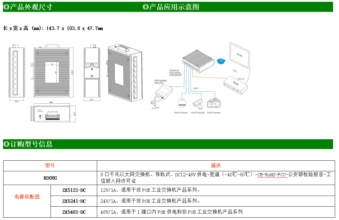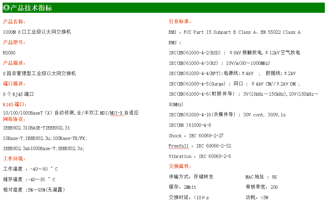 16路千兆電口工業級以太網交換機,支持16個10Base-T/100Base-T/1000Base-TX電口。產品符合FCC、CE、ROHS標準。RD016G交換機具有-40℃~80℃的工作溫度,具有超強的堅固度能適應各種嚴苛環境,也可以非常方便的安置在空間緊湊的控制箱中。導軌的安裝特性、寬溫操作及擁有IP40防護等級的外殼及LED指示燈,使RD016G成為一個即插即用的工業級設備,為用戶的以太網設備聯網提供可靠、便捷的解決方案。