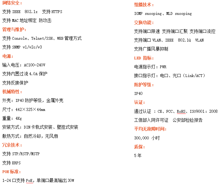 ●支持STP/RSTP/MSTP/ERPS,SNMPv1/v2c/v3,確保網(wǎng)絡(luò)安全