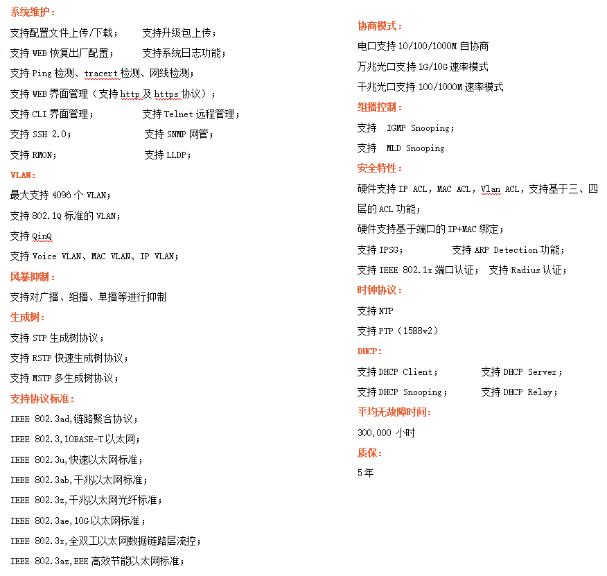 ●管理功能:支持WEB、CLI、SNMP等多種管理方式