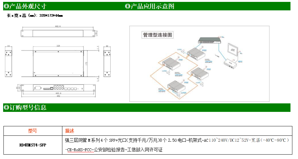 RD48MST4-SFP交換機(jī)是我司推出的一款萬(wàn)兆三層交換機(jī),配備4個(gè)萬(wàn)兆SFP+光口和8個(gè)10/100/1000/2500M Base-T自適應(yīng)電口,具備先進(jìn)的硬件處理能力和最豐富的業(yè)務(wù)特性。支持IPv4/IPv6 硬件雙棧及線速轉(zhuǎn)發(fā),使客戶能夠從容應(yīng)對(duì)即將帶來(lái)的IPv6 時(shí)代其提供高容量的交換能力。RD48MST4-SFP交換機(jī)具有-40℃~80℃的工作溫度,具有超強(qiáng)的堅(jiān)固度能適應(yīng)各種嚴(yán)苛環(huán)境,使RD48MST4-SFP的交換機(jī)成為一個(gè)即插即用的工業(yè)級(jí)設(shè)備,為用戶的以太網(wǎng)設(shè)備聯(lián)網(wǎng)提供可靠、便捷的解決方案。