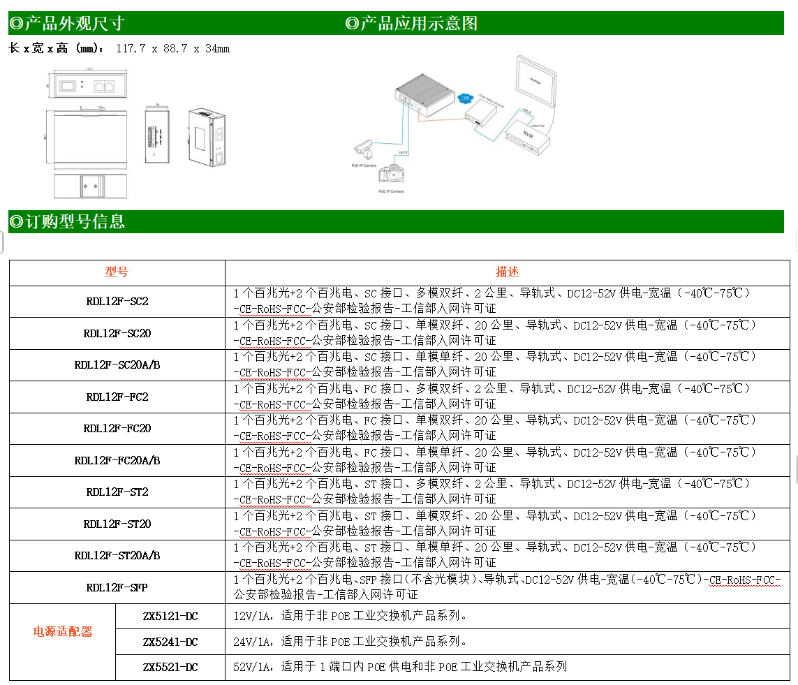 2路百兆電口+1路百兆FX光口工業(yè)級(jí)以太網(wǎng)交換機(jī),支持2個(gè)10Base-T/100Base-TX電口和1個(gè)100Base-X光口。產(chǎn)品符合FCC、CE、ROHS標(biāo)準(zhǔn)。RDL12F系列交換機(jī)具有-40℃~75℃的工作溫度,具有超強(qiáng)的堅(jiān)固度能適應(yīng)各種嚴(yán)苛環(huán)境,也可以非常方便的安置在空間緊湊的控制箱中。導(dǎo)軌的安裝特性、寬溫操作及擁有IP40防護(hù)等級(jí)的外殼及LED指示燈,使RDL12F成為一個(gè)即插即用的工業(yè)級(jí)設(shè)備,為用戶(hù)的以太網(wǎng)設(shè)備聯(lián)網(wǎng)提供可靠、便捷的解決方案。