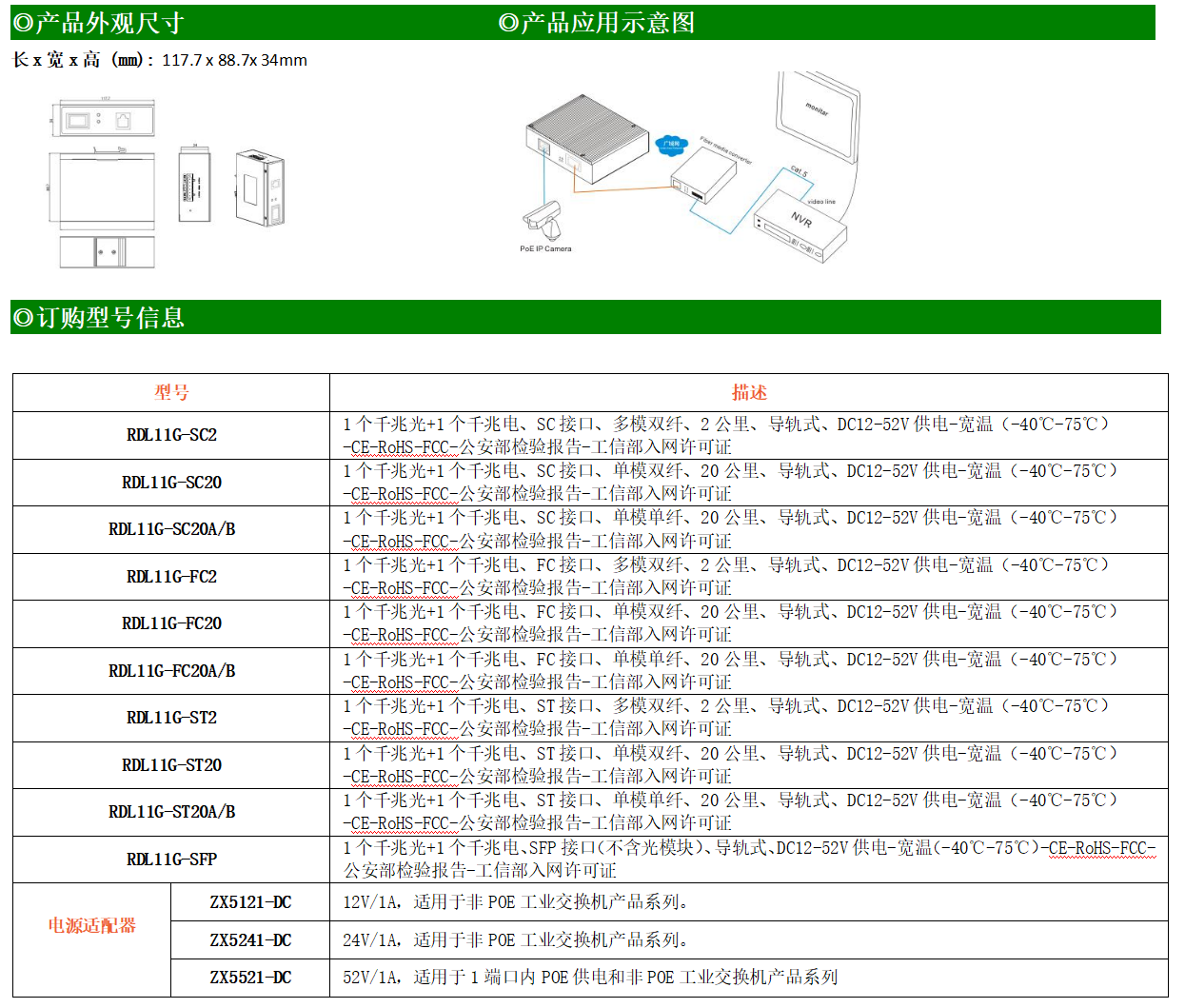 1路千兆電口+1路千兆FX光口工業級以太網交換機,支持1個10Base-T/100Base-T/1000Base-TX電口和1個1000Base-X光口。產品符合FCC、CE、ROHS標準。RDL11G系列交換機具有-40℃~75℃的工作溫度,具有超強的堅固度能適應各種嚴苛環境,也可以非常方便的安置在空間緊湊的控制箱中。導軌的安裝特性、寬溫操作及擁有IP40防護等級的外殼及LED指示燈,使RDL11G成為一個即插即用的工業級設備,為用戶的以太網設備聯網提供可靠、便捷的解決方案。