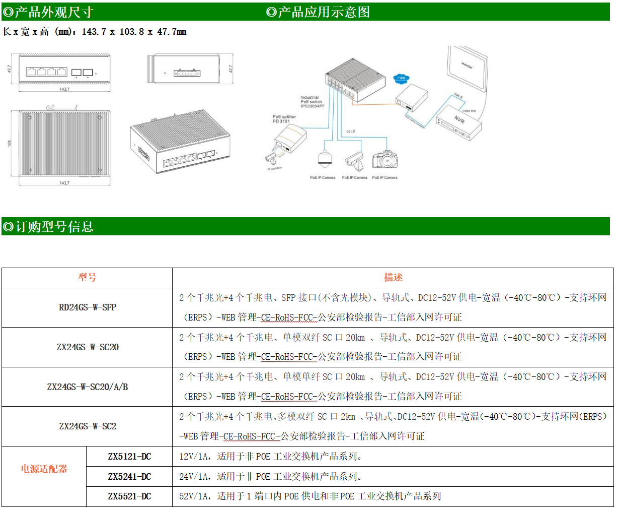 RD24GS-W系列WEB網管工業級以太網交換機,產品符合FCC、CE、ROHS標準,支持工業現場所需的以太網二層協議,保證通信網絡的穩定性。該系列交換機采用低功耗、無風扇設計,確保無噪聲干擾,同時支持-40~80℃工作溫度和良好的EMC電磁兼容性能,保證在惡劣的工業環境中保持穩定的工作,為工廠自動化,智能交通,視頻監控等工業應用領域組建快速穩定的網絡終端接入網絡提供安全可靠的解決方案。