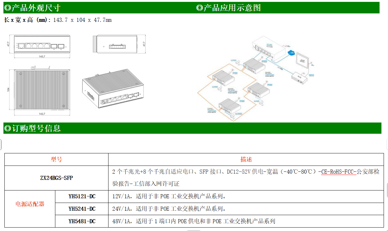 ZX24BGS-SFP是網(wǎng)管型工業(yè)以太網(wǎng)交換機(jī),產(chǎn)品符合FCC、CE、ROHS標(biāo)準(zhǔn)。支持2個(gè)千兆光口和4個(gè)千兆電口,支持一路console口;支持工業(yè)現(xiàn)場所需的以太網(wǎng)二層協(xié)議,保證通信網(wǎng)絡(luò)的穩(wěn)定性;該系列交換機(jī)采用低功耗、無風(fēng)扇設(shè)計(jì),確保無噪聲干擾,同時(shí)支持-40~85℃工作溫度和良好的EMC電磁兼容性能,保證在惡劣的工業(yè)環(huán)境中保持穩(wěn)定的工作,為工廠自動(dòng)化,智能交通,視頻監(jiān)控等工業(yè)應(yīng)用領(lǐng)域組建快速穩(wěn)定的網(wǎng)絡(luò)終端接入網(wǎng)絡(luò)提供安全可靠的解決方案。