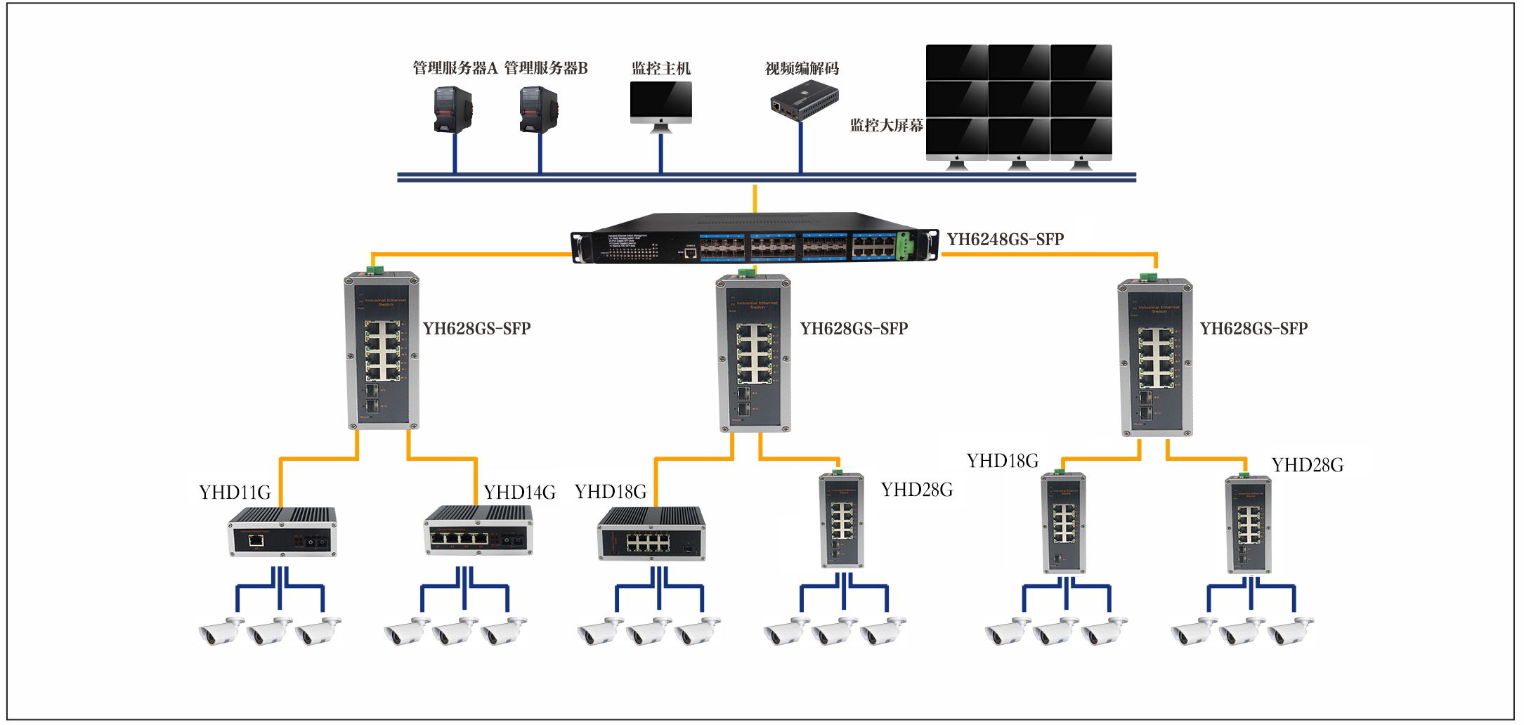 宇航在整個(gè)水電站視頻網(wǎng)絡(luò)監(jiān)控系統(tǒng)中采用了YH6248G4TS-SFP,YH628GS-SFP, YH611G,YH614G,YH618G,YH628G,YH618GF,YH628GF聚多個(gè)環(huán)網(wǎng)數(shù)據(jù)匯聚到Y(jié)H6248G4TS-SFP上傳到控制監(jiān)控中心,保障了各個(gè)監(jiān)控點(diǎn)監(jiān)控到位,與正常通信提高網(wǎng)絡(luò)數(shù)據(jù)傳輸?shù)母咝裕岣咚娬镜陌踩\(yùn)行水平。